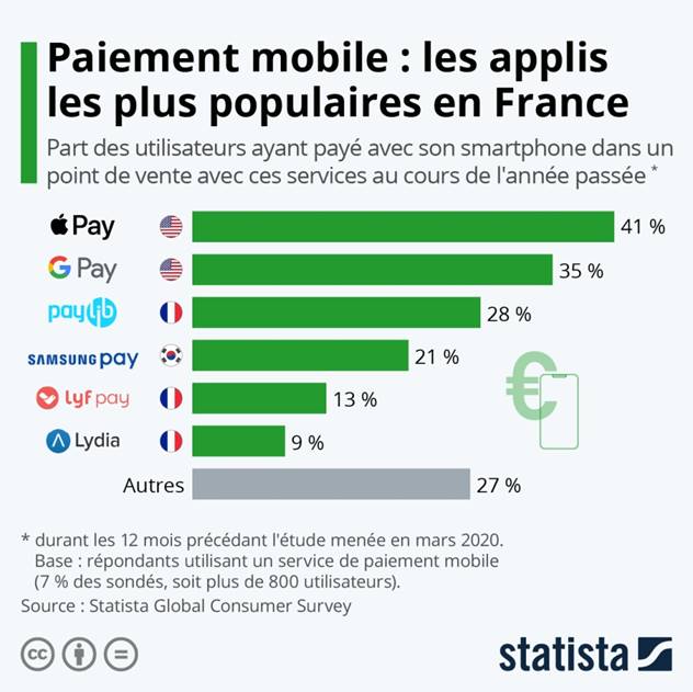 Que croire ? L’important est de constater les bons scores, dans les deux tableaux, de Google Pay et d’Apple Pay – surtout si l’on considère, pour ce dernier, que l’IPhone n’a que 24% de parts de marché en France.