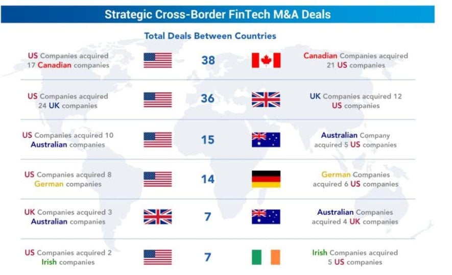 Par ailleurs, les financements et investissements transfrontières sont de plus en plus importants. En 2020, 28% des financements de fintechs européennes ont été réalisés par des investisseurs américains. Tandis que les opérations de M&A transfrontières dépassant le milliard $ sont passées de 23 en 2019 à 42 en 2020.